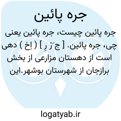جره پائین. [ ج َرْ رِ ] ( اِخ ) دهی است از دهستان مزارعی از بخش برازجان از شهرستان بوشهر.این ده در چهل ودوهزارگزی شمال برازجان در کنار رودخانه شاپور قرار دارد و محلی جلگه و گرمسیر و مالاریائی است و 67 تن سکنه دارد. آب آنجا از رودخانه شاپور تأمین میشود و محصول آن غلات و شغل اهالی زراعت و راه آن مالرو است. ( از فرهنگ جغرافیائی ایران ج 7 ).