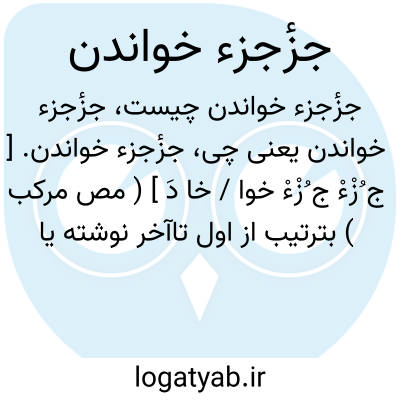 جزٔجزء خواندن. [ ج ُزْءْ ج ُزْءْ خوا / خا دَ ] ( مص مرکب ) بترتیب از اول تاآخر نوشته یا کتابی را خواندن. ( از ناظم الاطباء ).