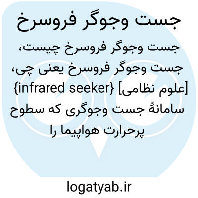 {infrared seeker} [علوم نظامی] سامانۀ جست وجوگری که سطوح پرحرارت هواپیما را هدف گیری می کند و به دنبال تابش فروسرخ حرکت می کند؛ از این توانمندی بیشتر در موشک های هدایت شونده و دستگاه های جاسوسی و اطلاعاتی استفاده می شود