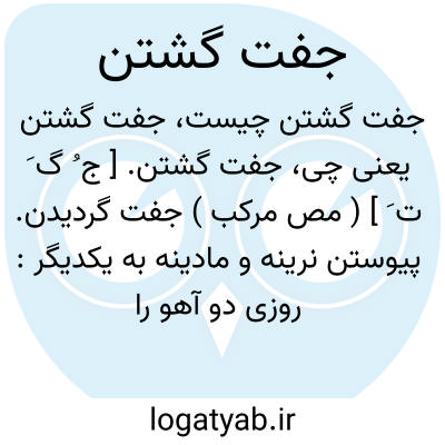 جفت گشتن. [ ج ُ گ َ ت َ ] ( مص مرکب ) جفت گردیدن. پیوستن نرینه و مادینه به یکدیگر: روزی دو آهو را دید که با هم جفت گشتند. ( مجمل التواریخ ). || همسر گردیدن زن و مرد. ازدواج. زناشوئی. زن و شوهر شدن. || قرین و دمساز گردیدن. ملازم گشتن:
