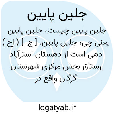 جلین پایین. [ ج ِ ] ( اِخ ) دهی است از دهستان استرآباد رستاق بخش مرکزی شهرستان گرگان واقع در 12هزارگزی خاور گرگان این ده در دشت قرار گرفته و هوایی معتدل مرطوب مالاریایی دارد. سکنه آن 110 تن. آب آن از رودخانه جوزولی و قنات. و محصول آن غلات، لبنیات، توتون سیگار و شغل اهالی زراعت و گله داری است و صنایع دستی زنان بافتن پارچه های ابریشمی و کرباس است.راه مالرو دارد. ( از فرهنگ جغرافیایی ایران ج 3 ).
