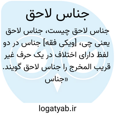[ویکی فقه] جناس در دو لفظ دارای اختلاف در یک حرف غیر قریب المخرج را جناس لاحق گویند.