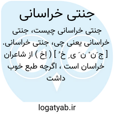 جنتی خراسانی. [ ج َن ْ ن َ ی ِ خ ُ ] ( اِخ ) از شاعران خراسان است، اگرچه طبع خوب داشت ولی طالعی نیکو نداشت و بفقر و فاقه میگذرانید. این مطلع از اوست: بمی خوردن چو ساقی ساغر می را دهن پوشد چه شد کو را بسر پوش سواد چشم من پوشد. ( از مجالس النفایس ص 69 و 239 ) ( از الذریعة جزء 1 از ج 9 ص 206 ).