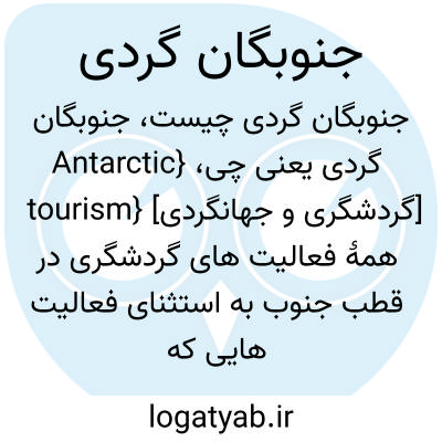 {Antarctic tourism} [گردشگری و جهانگردی] همۀ فعالیت های گردشگری در قطب جنوب به استثنای فعالیت هایی که به طور مستقیم با پژوهش های علمی و امور دولتی سروکار دارند