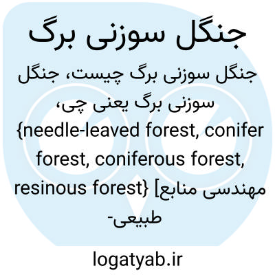 {needle-leaved forest, conifer forest, coniferous forest, resinous forest} [مهندسی منابع طبیعی- محیط زیست و جنگل] جنگلی که درختان آن عمدتاً برگ های همیشه سبز سوزنی و میوۀ مخروطی و مواد رزینی دارد