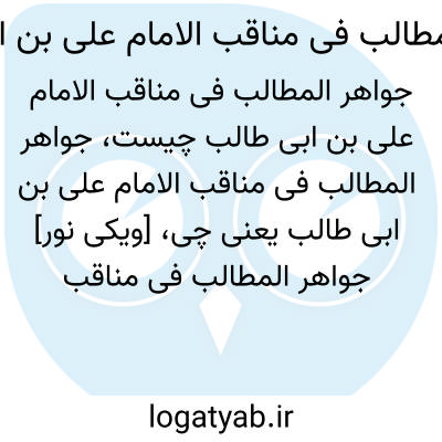 [ویکی شیعه] جواهر المطالب فی مناقب الامام علی بن ابی طالب (کتاب). جَواهرُ المَطالب فی مَناقب الإمام علی بن أبی طالب(ع) اثر شمس الدین محمد بن احمد باعونی دمشقی (درگذشت ۸۷۱ق) عالم اهل سنت، با موضوع مناقب و فضائل امام علی(ع) با تکیه بر منابع اهل سنت.
