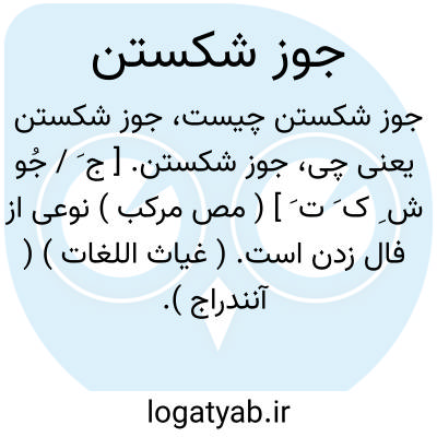 جوز شکستن. [ ج َ / جُو ش ِ ک َ ت َ ] ( مص مرکب ) نوعی از فال زدن است. ( غیاث اللغات ) ( آنندراج ).