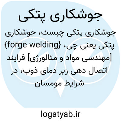 {forge welding} [مهندسی مواد و متالورژی] فرایند اتصال دهی زیر دمای ذوب، در شرایط مومسان (plastic condition )، که عامل تعیینکننده در آن نیروی سطحی بین دو قطعه است