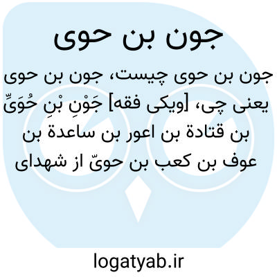 [ویکی شیعه] جَون بن حُوَی از شهدای کربلا و غلام سیاه پوست ابوذر غفاری. روز عاشورا امام حسین(ع) جون را از رفتن به میدان بازداشت ولی او خطاب به امام گفت: به خدا سوگند هرگز از شما جدا نمی شوم تا خون من با خون شما درآمیزد.