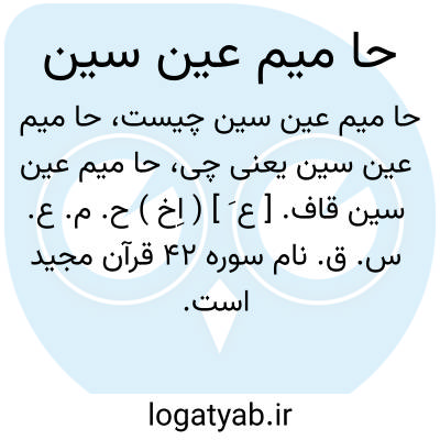 حا میم عین سین قاف. [ ع َ ] ( اِخ ) ح. م. ع. س. ق. نام سوره 42 قرآن مجید است. سورةالشوری. رجوع به حمعسق شود.