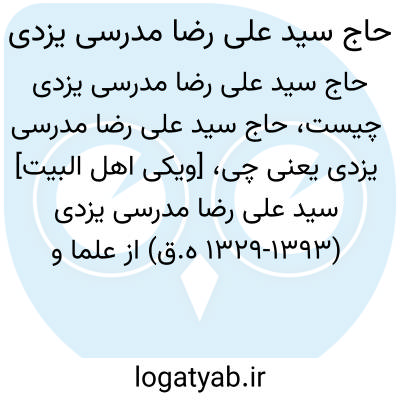 [ویکی اهل البیت] سید علی رضا مدرسی یزدی (1329-1393 ه.ق) از علما و فقهای برجسته شیعی در دوران معاصر است. وی در محضر اساتیدی همچون سید حسین مدرس باغ گندمی، میرزا سید احمد مدرس شاگردی کرد.