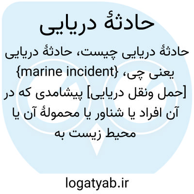 {marine incident} [حمل ونقل دریایی] پیشامدی که در آن افراد یا شناور یا محمولۀ آن یا محیط زیست به مخاطره بیفتد، تاحدی که احتمال آسیب رسیدن به آنها وجود داشته باشد