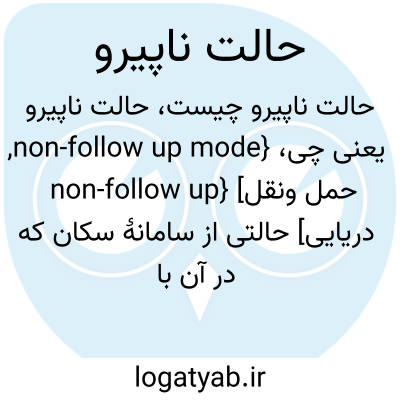 {non-follow up mode, non-follow up} [حمل ونقل دریایی] حالتی از سامانۀ سکان که در آن با چرخاندن دسته یا فرمان سکان می توان جهت حرکت را تغییر داد، اما برای تغییر جهت مجدد با وجود برگشت فرمان، سامانه منتظر دستورهای دورافزار سکان می ماند اختـ. ناپیرو NFU