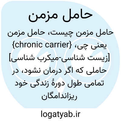 {chronic carrier} [زیست شناسی-میکرب شناسی] حاملی که اگر درمان نشود، در تمامی طول دورۀ زندگی خود ریزاندامگان را حمل می کند