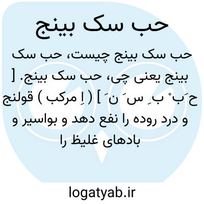 حب سک بینج. [ ح َب ْ ب ِ س َ ن َ ] ( اِ مرکب ) قولنج و درد روده را نفع دهد و بواسیر و بادهای غلیظ را دفع کند و بول و حیض براند. صفت آن: صبر سقوطری و سکبینج وتخم کرفس و انزروت و پوست هلیله زرد از هر یک دو درم و نیم، تربد دو درم، تخم حنظل یک درم و نیم، همه را کوفته و پخته به آب خالص بسرشند و حب ها ساخته از دو درم تا سه درم میل نمایند. رجوع به سک بینه شود.