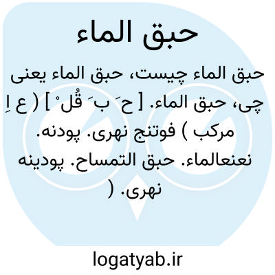 حبق الماء. [ ح َ ب َ قُل ْ ] ( ع اِ مرکب ) فوتنج نهری. پودنه. نعنعالماء. حبق التمساح. پودینه نهری. ( منتهی الارب ). پودنه آبی. فوتنج نهری. ( اختیارات ). فودنج نهری. پونه. حَبق. ضومران. ضمیران. پودنه جویباری. پودنه لب جوی.