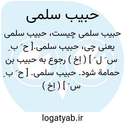 لغت نامه دهخدا حبیب سلمی.[ ح َ ب ِ س َ ل َ ] ( اِخ ) رجوع به حبیب بن حمامة شود.حبیب سلمی. [ ح َ ب ِ س َ ] ( اِخ ) رجوع به حبیب بن ربیعه سلمی شود.