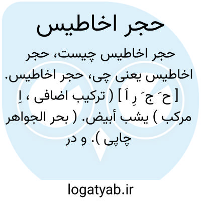 حجر اخاطیس. [ ح َ ج َ رِ اَ ] ( ترکیب اضافی، اِ مرکب ) یشب أبیض. ( بحر الجواهر چاپی ). و در برخی نسخه های خطی: احاطیس، الشب الابیض با حاء مهمله و شب بدون یاء آمده است. و در حرف یاءگوید: یشب حجر یتخذ منه خاتم... و ینفع المعده...