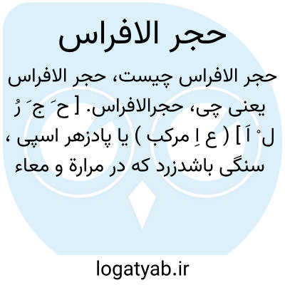 حجرالافراس. [ ح َ ج َ رُ ل ْ اَ ] ( ع اِ مرکب ) یا پادزهر اسپی، سنگی باشدزرد که در مرارة و معاء اسپان یافته شود و در قدیم استعمال طبی داشته است.