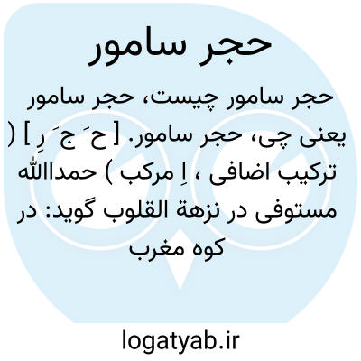 حجر سامور. [ ح َ ج َ رِ ] ( ترکیب اضافی، اِ مرکب ) حمداﷲ مستوفی در نزهة القلوب گوید: در کوه مغرب میباشد به هر سنگ که از آن خطی کشند آن سنگ پاره شود بی آنکه از او آوازی آید.