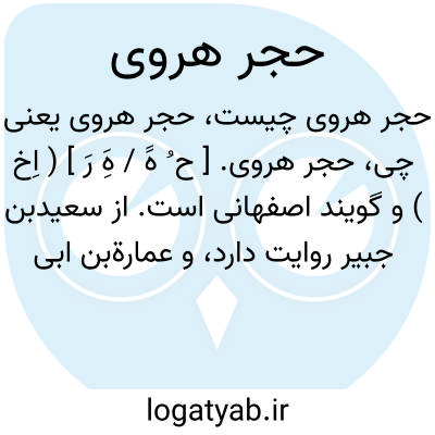 حجر هروی. [ ح ُ هََ / هَِ رَ ] ( اِخ ) و گویند اصفهانی است. از سعیدبن جبیر روایت دارد، و عمارةبن ابی حفصة از وی. ابوحاتم گوید: او را نشناسم. ( لسان المیزان ج 2 ص 181 ).