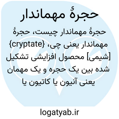 {cryptate} [شیمی] محصول افزایشی تشکیل شده بین یک حجره و یک مهمان یعنی آنیون یا کاتیون یا گروه خنثی