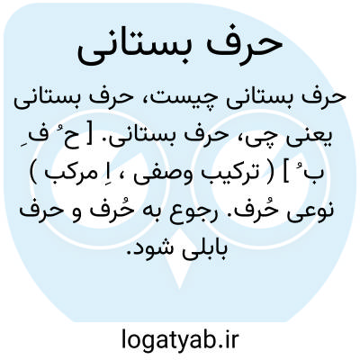 حرف بستانی. [ ح ُ ف ِ ب ُ ] ( ترکیب وصفی، اِ مرکب ) نوعی حُرف. رجوع به حُرف و حرف بابلی شود.