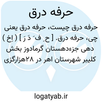 حرفه درق. [ ح ِ ف َ دَ رَ ] ( اِخ ) دهی جزءدهستان گرمادوز بخش کلیبر شهرستان اهر در 28هزارگزی شمال خاوری آبش احمد مرکز دهستان و 14500گزی جاده ارابه رو اصلاندوز - لاریجان. کوهستانی و گرمسیر و مالاریائی است. سکنه آن 132 تن. شیعه. ترکی. آب آن از رودخانه درآورد و چشمه و محصول آن غلات، پنبه، حبوبات وشغل مردم زراعت و گله داری است. صنایع دستی فرش و گلیم بافی است. محل قشلاق ایل چلیپانلوست. این ده را حرقشه درق نیز گویند. ( از فرهنگ جغرافیائی ایران ج 4 ).