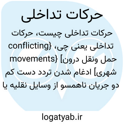{conflicting movements} [حمل ونقل درون شهری] ادغام شدن تردد دست کم دو جریان ناهمسو از وسایل نقلیه یا افراد پیاده در تقاطع ها