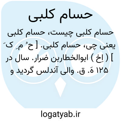حسام کلبی. [ ح ُ م ِ ک َ ] ( اِخ ) ابوالخطاربن ضرار. سال در 125 هَ. ق. والی آندلس گردید و صمیل بن حاتم مضری در شدونه با وی به مخاصمت پرداخت و او از قرطبه به ایشان حمله کرد و بدست ایشان اسیر گشت وخلع شد، لیکن وی فرار کرد و دوباره به کمک یمانیان به جنگ پرداخت و در 130 هَ. ق. به دست صمیل کشته شد. ( اعلام زرکلی چ 1 ص 218 ). و رجوع به ابوالخطار شود.