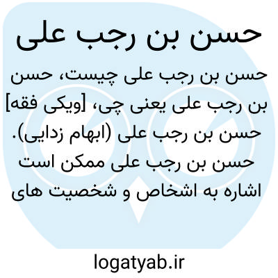 [ویکی فقه] حسن بن رجب علی (ابهام زدایی). حسن بن رجب علی ممکن است اشاره به اشخاص و شخصیت های ذیل باشد: • حسن بن رجب علی دری اصفهانی، عالم فاضل و فقیه جامع و حکیم زاهد در اصفهان• حسن بن رجب علی عمرانی اصفهانی، از شاهنامه خوانان اصفهان در قرن چهاردهم هجری