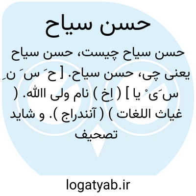 حسن سیاح. [ ح َ س َ ن ِ س َی ْ یا ] ( اِخ ) نام ولی اﷲ. ( غیاث اللغات ) ( آنندراج ). و شاید تصحیف صباح باشد.