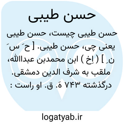 حسن طیبی. [ ح َ س َ ن ِ ] ( اِخ ) ابن محمدبن عبداﷲ، ملقب به شرف الدین دمشقی. درگذشته 743 هَ. ق. او راست: التبیان در معانی و بیان و جز آن. ( هدیة العارفین ج 1 ص 283 ) ( روضات ص 224 ).
