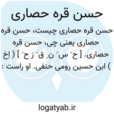 حسن قره حصاری. [ ح َ س َ ن ِ ق َ رَ ح َ ] ( اِخ ) ابن حسین رومی حنفی. او راست: «شامل اللغة» که در 947 هَ. ق. تألیف کرده است. ( هدیة العارفین ج 1 ص 290 ).