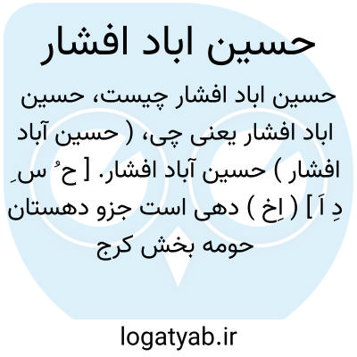 ( حسین آباد افشار ) حسین آباد افشار. [ ح ُ س ِ دِ اَ ] ( اِخ ) دهی است جزو دهستان حومه بخش کرج شهرستان تهران. واقع در 10هزارگزی باختر کرج و سه هزارگزی راه شوسه کرج به قزوین. ناحیه ای است واقع در جلگه ولی معتدل. دارای 617 تن سکنه میباشد.ترکی و فارسی زبانند. از رودخانه کرج مشروب میشود. محصولات آنجا غلات، بنشن، چغندر قند، صیفی، میوه جات و قلمستان. اهالی به کشاورزی گذران میکنند. از آثار قدیم امامزاده یی بنام امامزاده طاهر دارد. مزرعه عدل آباد جزء این ده است. یک باب دبستان نیز دارد. از حصارک میتوان ماشین برد. ( فرهنگ جغرافیایی ایران ج 1 ).