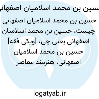 [ویکی فقه] حسین بن محمد اسلامیان اصفهانی، هنرمند معاصر اصفهان می باشد.