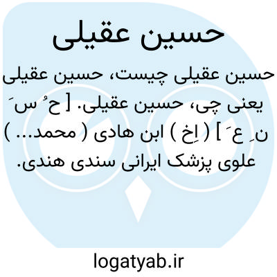 حسین عقیلی. [ ح ُ س َ ن ِ ع َ ] ( اِخ ) ابن هادی ( محمد... ) علوی پزشک ایرانی سندی هندی. درگذشته در 1183 هَ. ق. او راست: مخزن الادویة که چاپ شده و در این لغتنامه از آن نقل میکنیم و نیز او راست: دستور شفائی و مجمع الجوامع و ذخائر التراکیب و او از خویشاوندان معتمدالملوک پزشک است. ( ذریعه ج 8 ص 161 ).