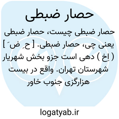 حصار ضبطی. [ ح ِ ض َ ] ( اِخ ) دهی است جزو بخش شهریار شهرستان تهران. واقع در بیست هزارگزی جنوب خاور شهریار وسه هزارگزی شمال راه رباطکریم به تهران. ناحیه ای است واقع در جلگه معتدل. دارای 80 تن سکنه میباشد. فارسی و ترکی زبانند. از قنات مشروب می شود. محصولات آنجا غلات، صیفی، چغندر قند. اهالی به کشاورزی گذران میکنند. از آثار قدیم یک تپه خرابه در اراضی این ده، کنارجاده دیده میشود. ( از فرهنگ جغرافیایی ایران ج 1 ).