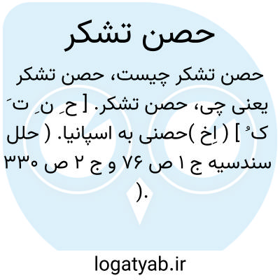 حصن تشکر. [ ح ِ ن ِ ت َ ک ُ ] ( اِخ )حصنی به اسپانیا. ( حلل سندسیه ج 1 ص 76 و ج 2 ص 330 ).