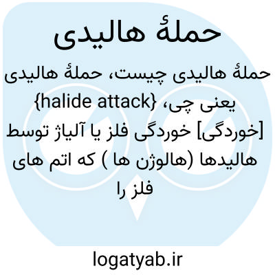 {halide attack} [خوردگی] خوردگی فلز یا آلیاژ توسط هالیدها (هالوژن ها ) که اتم های فلز را اکسید می کنند و یک پوستۀ هالیدی تشکیل می دهند