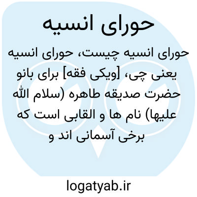 [ویکی فقه] برای بانو حضرت صدیقه طاهره (سلام الله علیها) نام ها و القابی است که برخی آسمانی اند و از سوی آفریدگار تعیین شده و بعضی از سوی برگزیدگان الهی تعیین شده است. یکی از القاب آن حضرت حورای انسیه است.