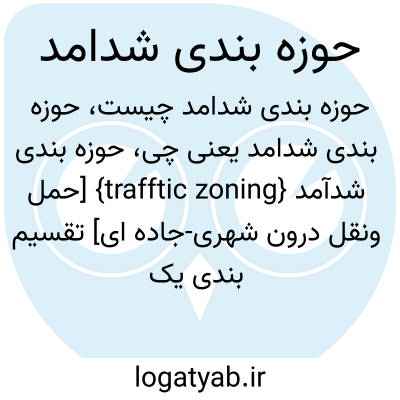 {trafftic zoning} [حمل ونقل درون شهری-جاده ای] تقسیم بندی یک محدودۀ شهری به نواحی یا مناطق متعدد برای انجام مطالعات مربوط به شدآمد