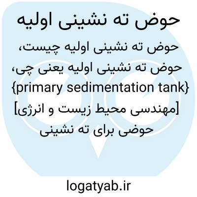 {primary sedimentation tank} [مهندسی محیط زیست و انرژی] حوضی برای ته نشینی مواد جامد قبل از مرحلۀ تصفیۀ ثانویه