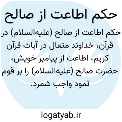 [ویکی فقه] حکم اطاعت از صالح (قرآن). خداوند متعال اطاعت از حضرت صالح (علیه السلام) را بر قوم ثمود واجب فرمود، ولی آن قوم طغیانگر پیغمبر خدا را تکذیب کردند.