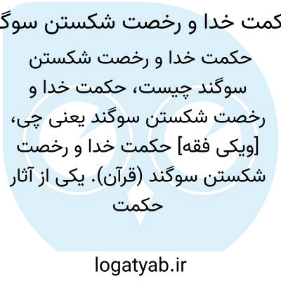 [ویکی فقه] حکمت خدا و رخصت شکستن سوگند (قرآن). یکی از آثار حکمت خداوند که در قرآن کریم به آن اشاره شده است رخصت شکستن سوگند است.