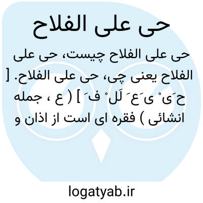 حی علی الفلاح. [ ح َی ْ ی َع َ لَل ْ ف َ ] ( ع، جمله انشائی ) فقره ای است از اذان و اقامه، بمعنی بشتابید و تعجیل کنید به رستگاری.