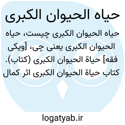 [ویکی فقه] حیاه الحیوان الکبری (کتاب). کتاب حیاة الحیوان الکبری اثر کمال الدین دمیری در باره روحیات و حالات حیوانات و به زبان عربی نوشته شده است؛ وی روایات و آیات قرآنی را که در ارتباط با موضوع مورد نظر هستند گرد آورده است.