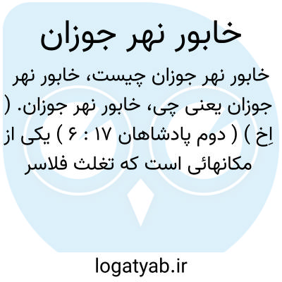 خابور نهر جوزان. ( اِخ ) ( دوم پادشاهان 17: 6 ) یکی از مکانهائی است که تغلث فلاسر بعضی از بنی اسرائیل را در آنجا سکونت داد وپس از وی شلمناصر آمده و اسباط عشره را نیز اسیر کرده در آن نواحی منزل داد. ( قاموس کتاب مقدس ص 339 ).