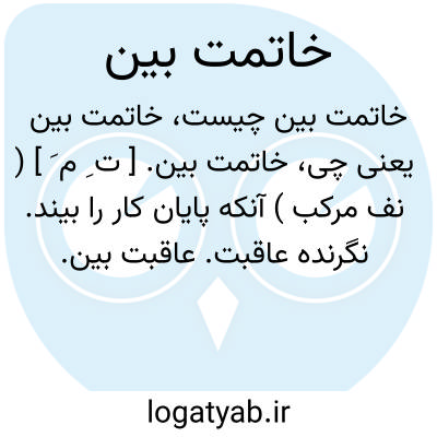 خاتمت بین. [ ت ِ م َ ] ( نف مرکب ) آنکه پایان کار را بیند. نگرنده عاقبت. عاقبت بین.