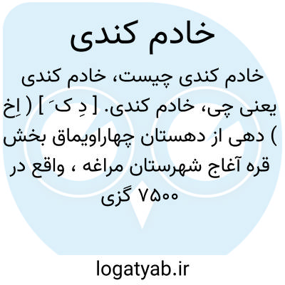 خادم کندی. [ دِ ک َ ] ( اِخ ) دهی از دهستان چهاراویماق بخش قره آغاج شهرستان مراغه، واقع در 7500 گزی جنوب خاوری شوسه مراغه بمیانه. محلی است کوهستانی و معتدل و سکنه آن 157 تن مذهبشان شیعه و زبانشان ترکی است، آب آنجا از رودخانه است و محصول آنجا غلات، نخود، بزرک میباشد. شغل اهالی زراعت و صنعت دستی جاجیم بافی است. راه مالرو میباشد. ( از فرهنگ جغرافیائی ایران ج 4 ).